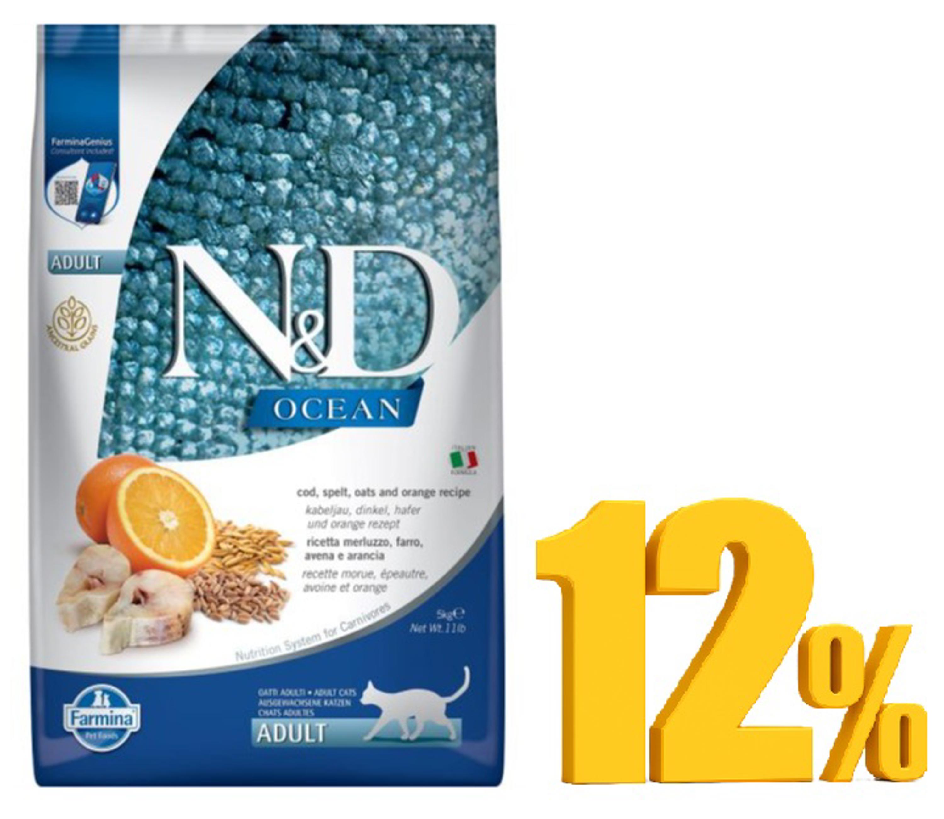 SALE! Farmina N&D OCEAN Cod, spelt, oats and orange for adult cat
