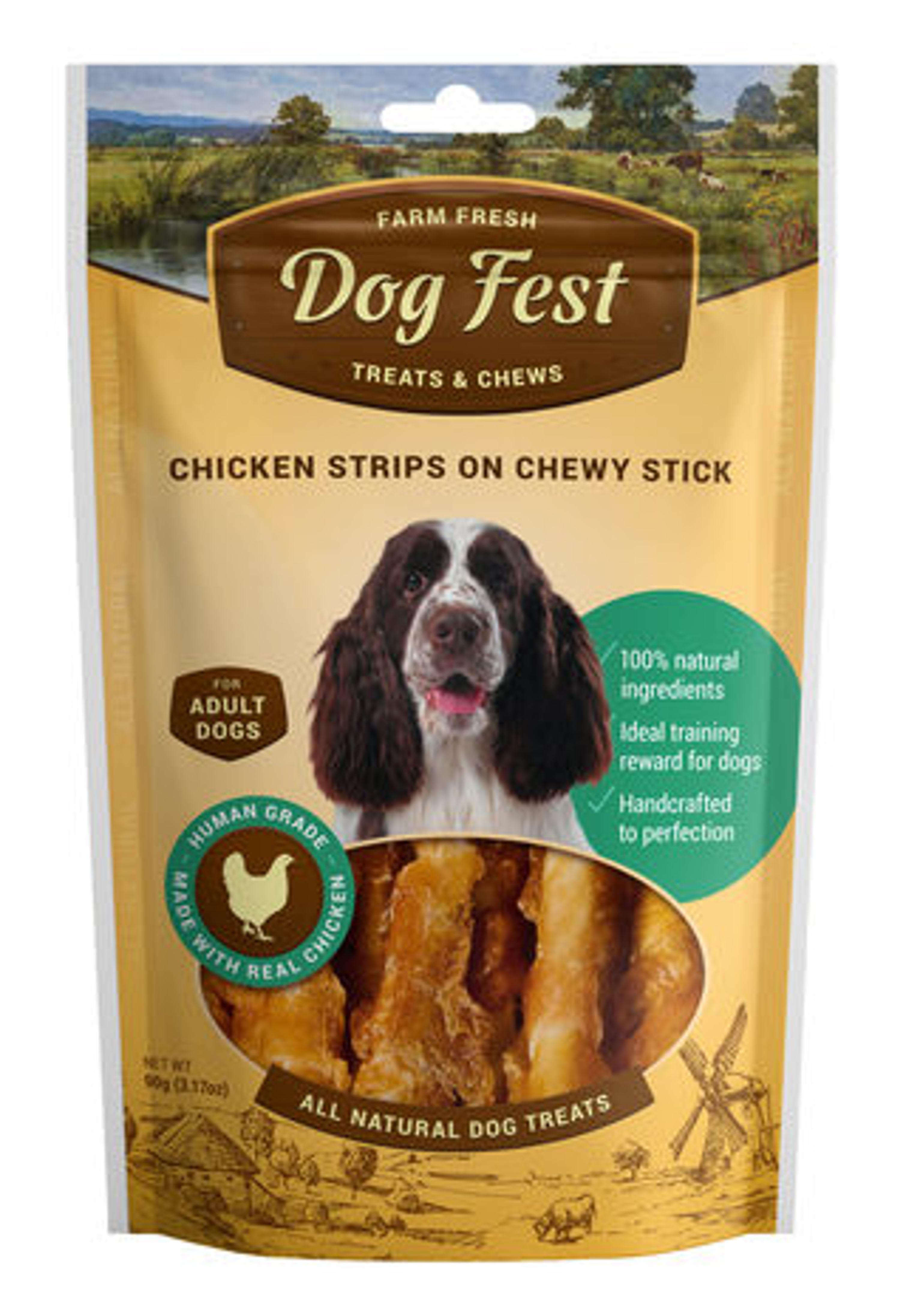 מקל לעיסה מעור גולמי, עטוף בפילה עוף איכותי כמקור איכותי לחלבון.