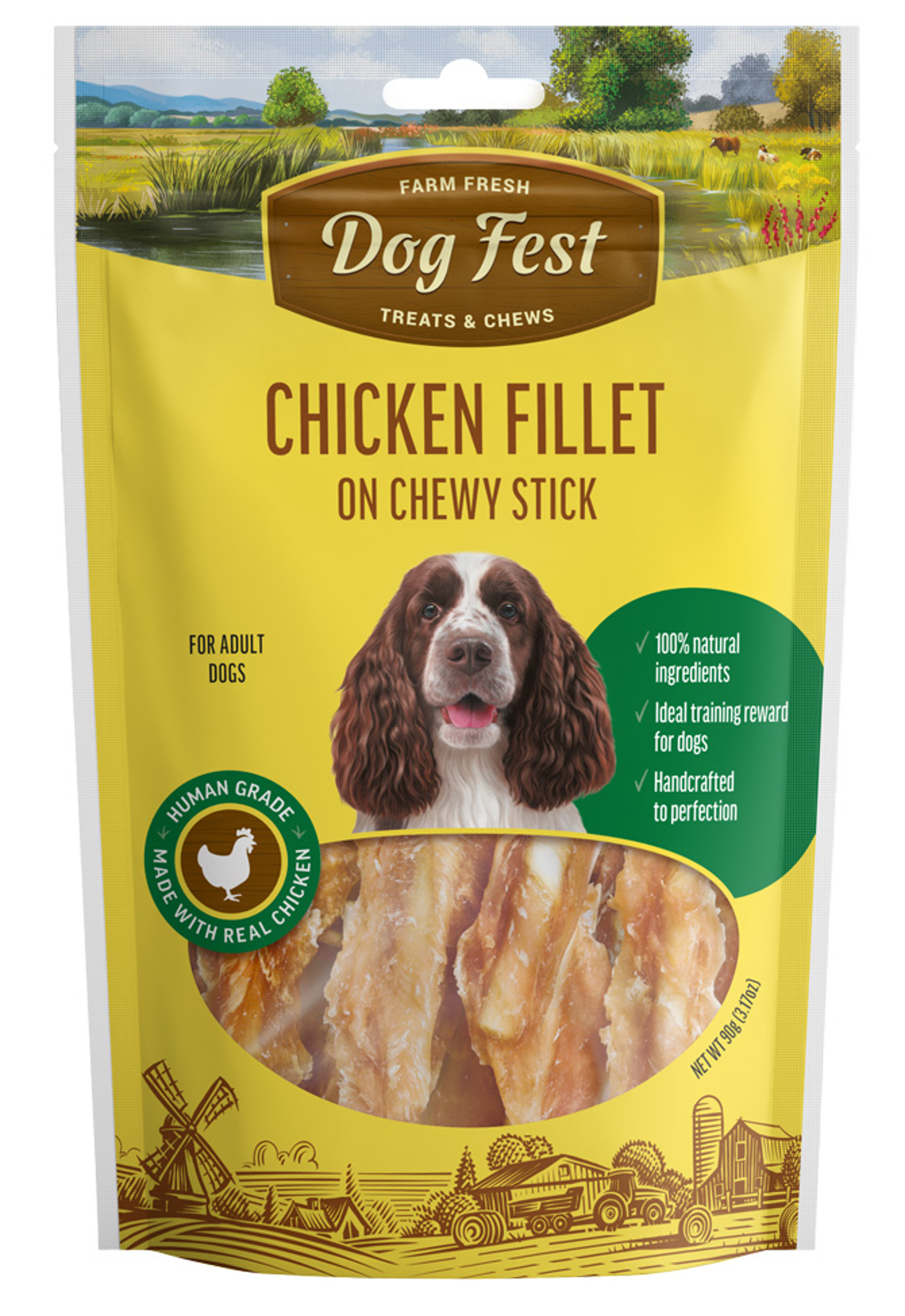 מכיל פילה עוף אמיתי בעל טעימות גבוהה, על מקל עור גולמי.