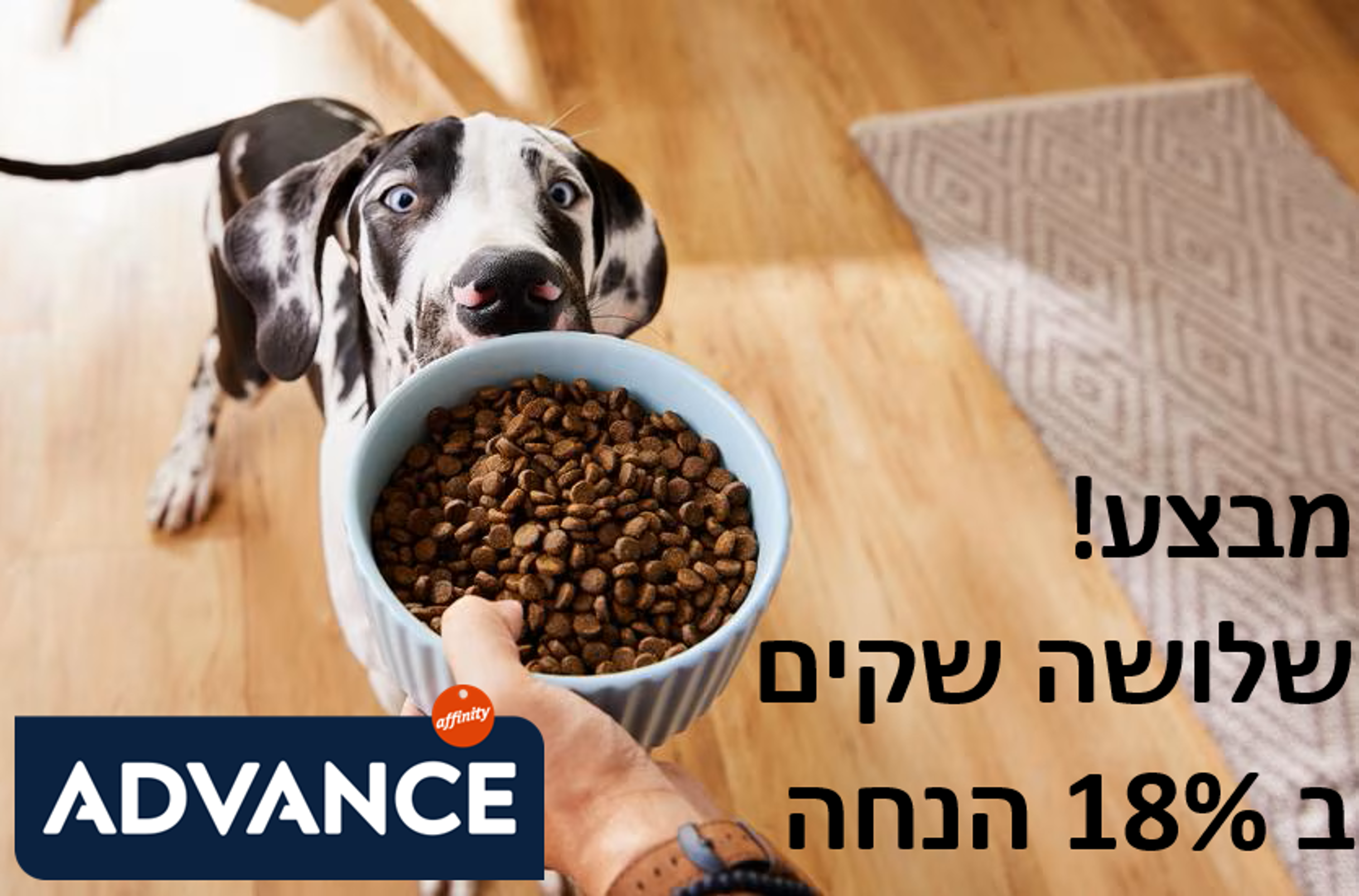 ₪0.0 מחיר ל יח'מבצע! 3 שקי אדוונס לכלב ב 18% הנחה