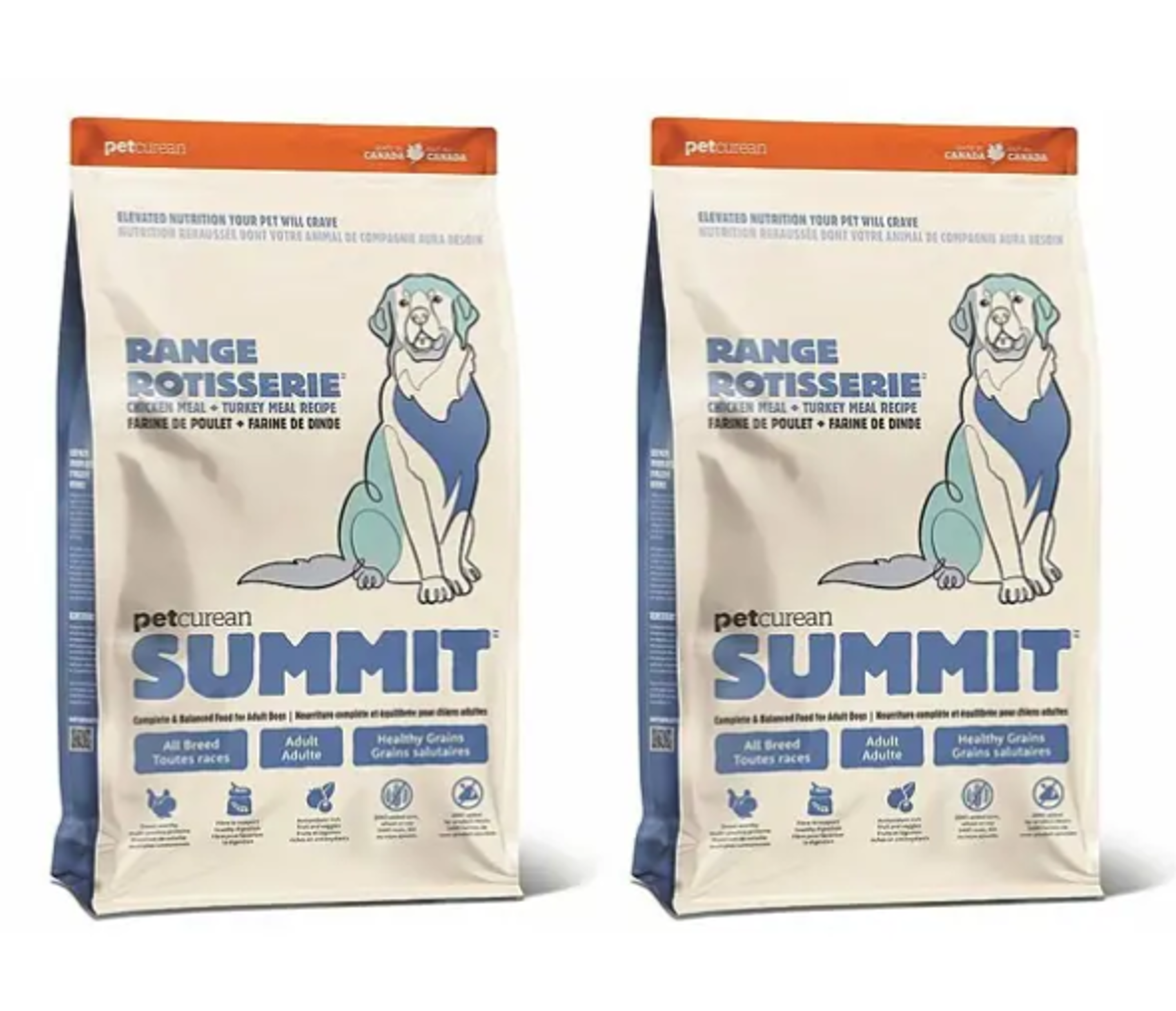 בהשראת רכסי ההרים של קולומביה והטעם העדין של עופות צלויים, Petcurean Summit Range Rotisserie משלב ארוחת עוף וארוחת הודו באיכות פרימיום עם ירקות, פירות ודגנים בכל ביס.