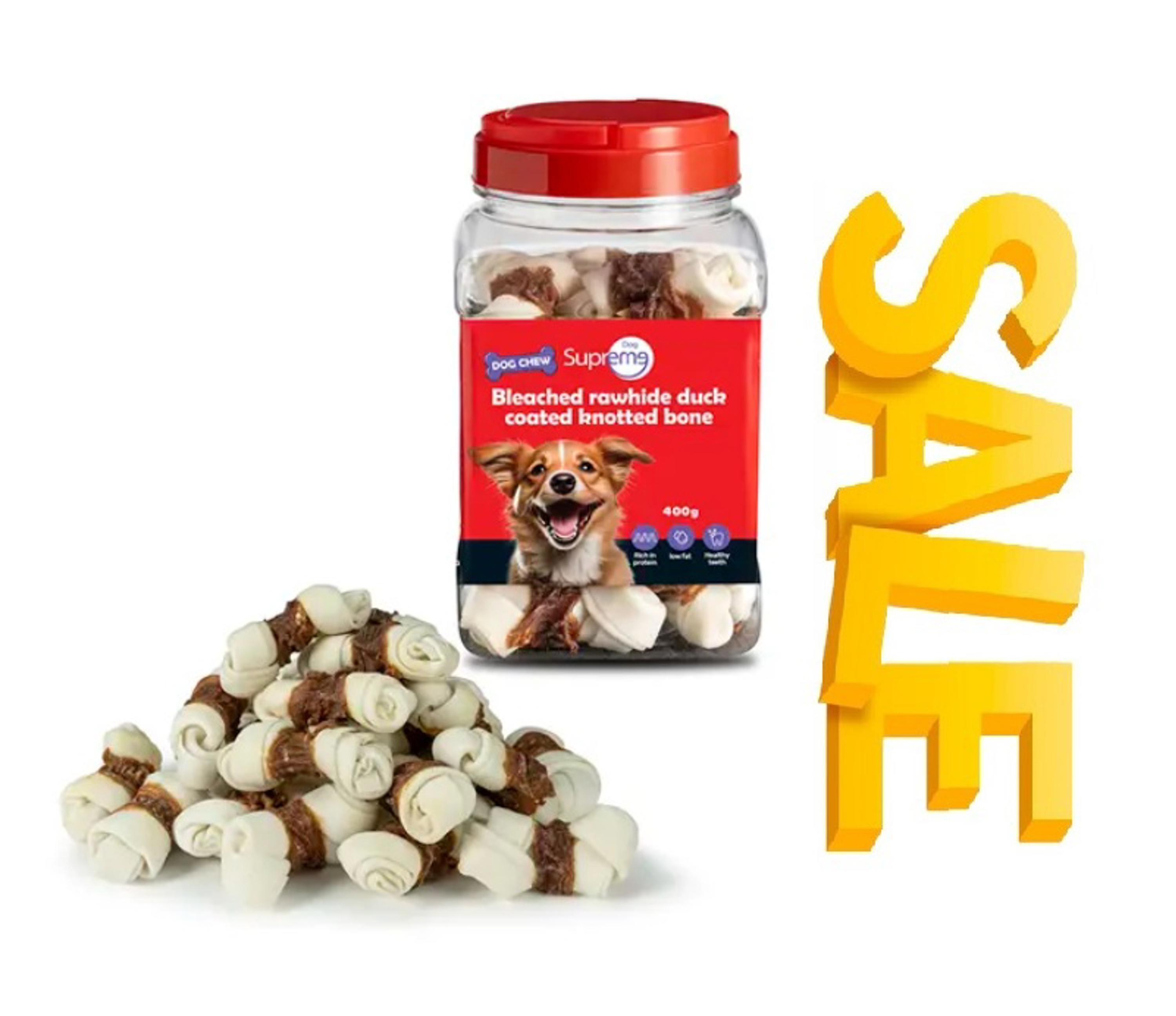 SALE! 2PSC SUPREME Bleached Rawhide Duck coated knotted Bone
