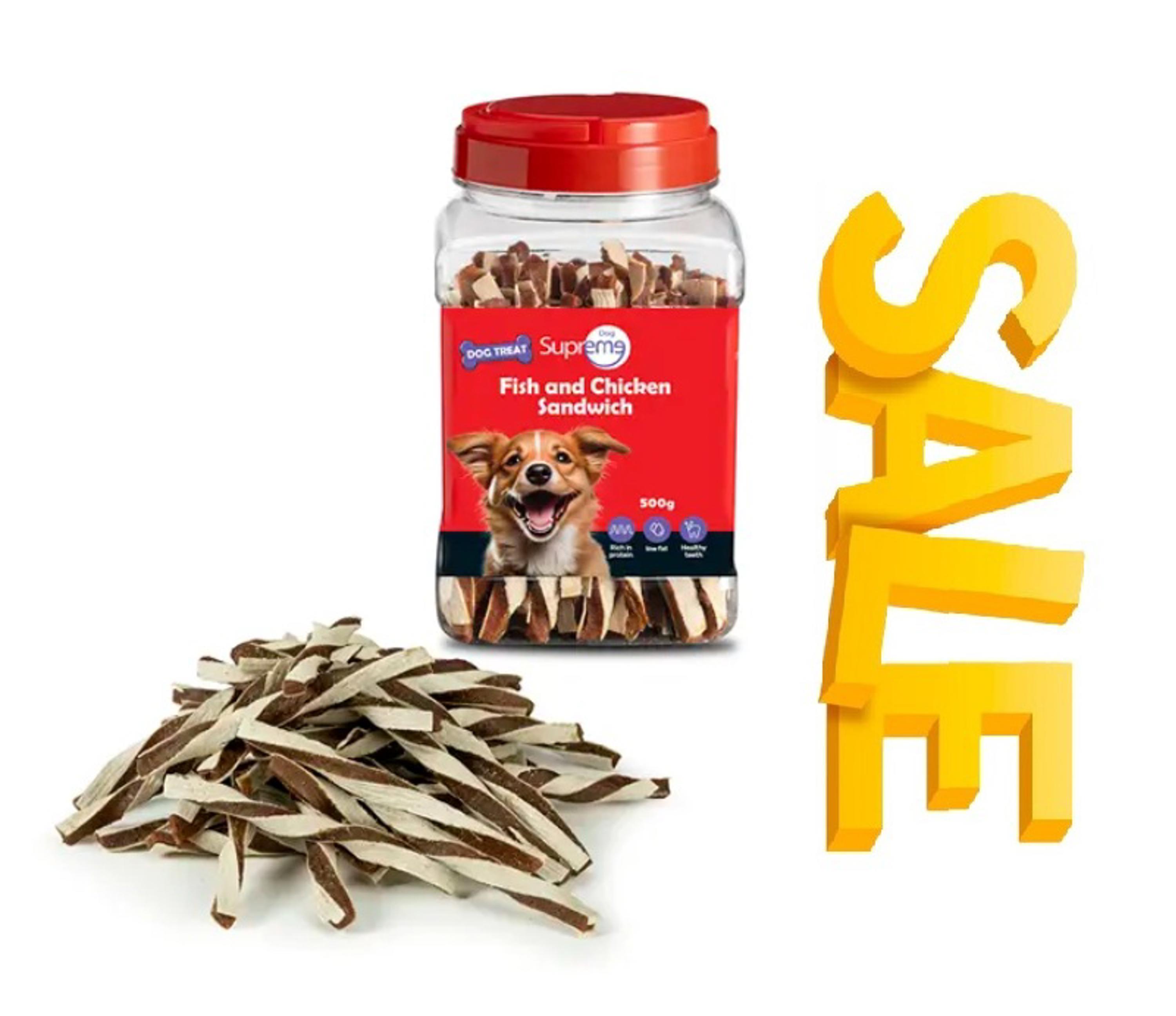 מבצע! 2 צנצנות חטיפי סופרים סופרים סנדוויץ' דג ועוף לכלבים ב-99₪!