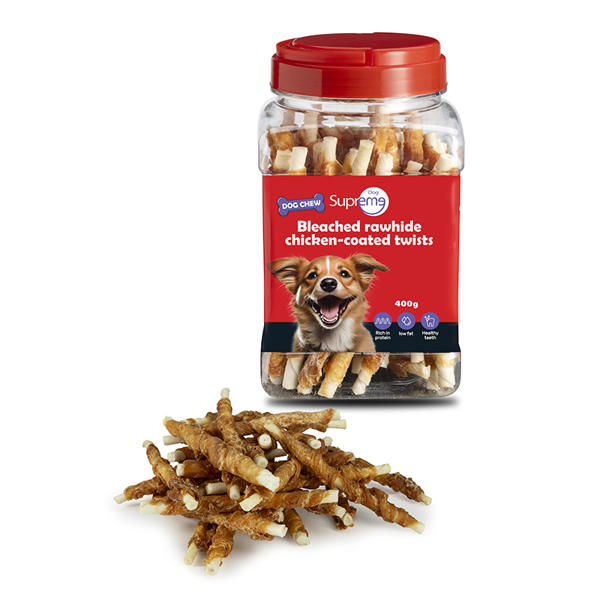 Supreme Bleached Rawhide Chicken-coated twists 400g