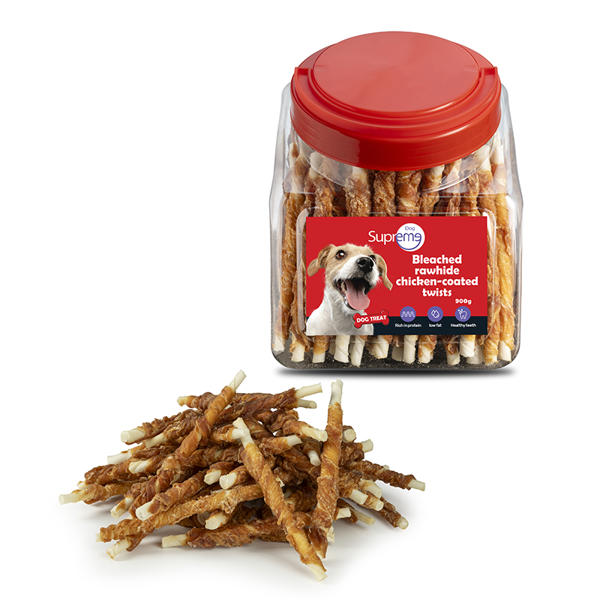 Supreme Bleached Rawhide Chicken-coated twists 900g