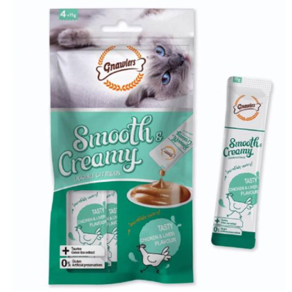 Gnawlers Liquid cream snack for cats, chicken and liver flavor