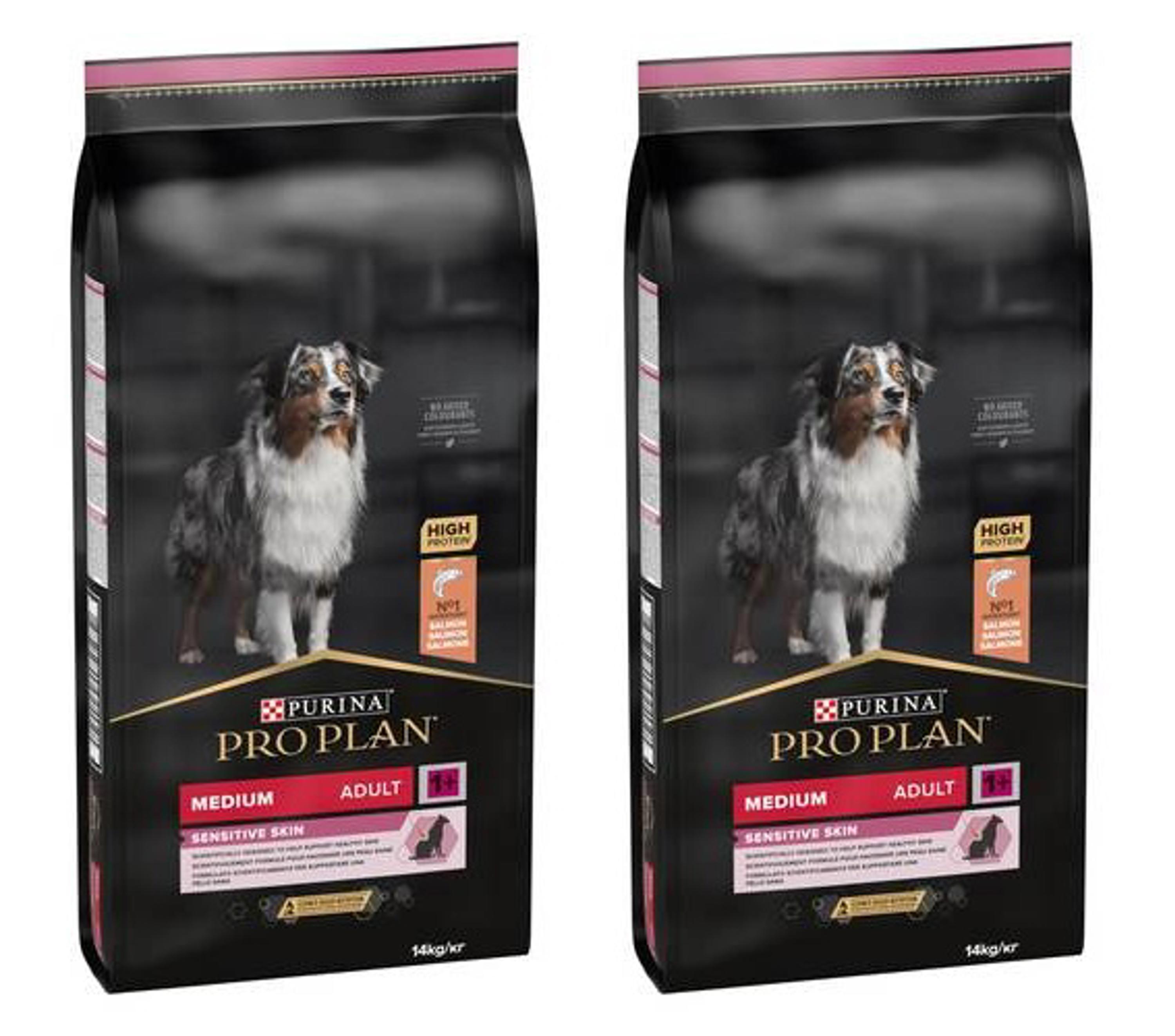 2 שקי מזון פרו פלאן לכלב בוגר מדיום סנסיטיב סלמון 14 קילו כל שק