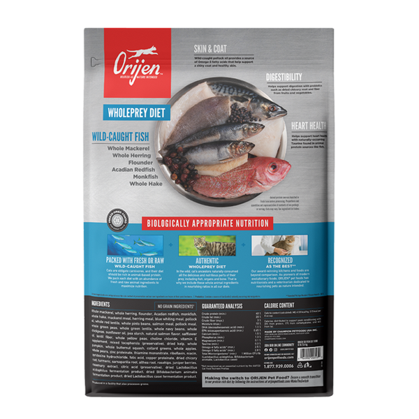 אוריג'ן מיקס 6 דגים מבוסס על המגוון העשיר של דגים ממימיה הצלולים של קנדה, והוא מלא בכל טוב בדגי מים מלוחים ומתוקים שהגיעו למטבחינו טריים. מזון אוריג'ן עטור הפרסים, המיוצר במטבחינו מהדגים והפירות הטריים ביותר בקנדה, מבטיח שהחתול שלכם יהיה מאושר, בריא וחזק. מזון יבש מלא לחתולים מכל הגזעים והגילאים.