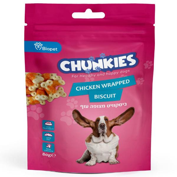 ₪236.3 מחיר ל ק"גצ'אנקיז ביסקוויט מצופה עוף Chunkies Chicken Wrapped Biscuit